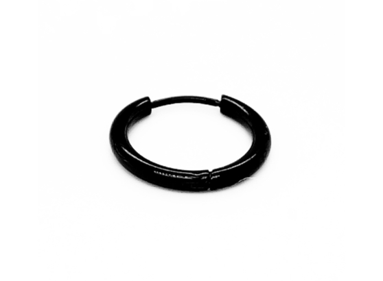 - 12 mm inner diameter and 15 mm outer diameter- Single hoop earring- IP black plated 316L surgical stainless steel