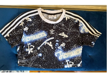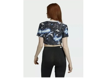 ADIDAS x FIORUCCI Graphic Women T-Shirt Cropped Milky Way Star Print Zodiac Sz10