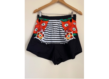 Preloved ALICE MCCALL Top & Short Set Bournemouth Belle Embroidered Flowers Black StripesTop size 8Shorts size 10