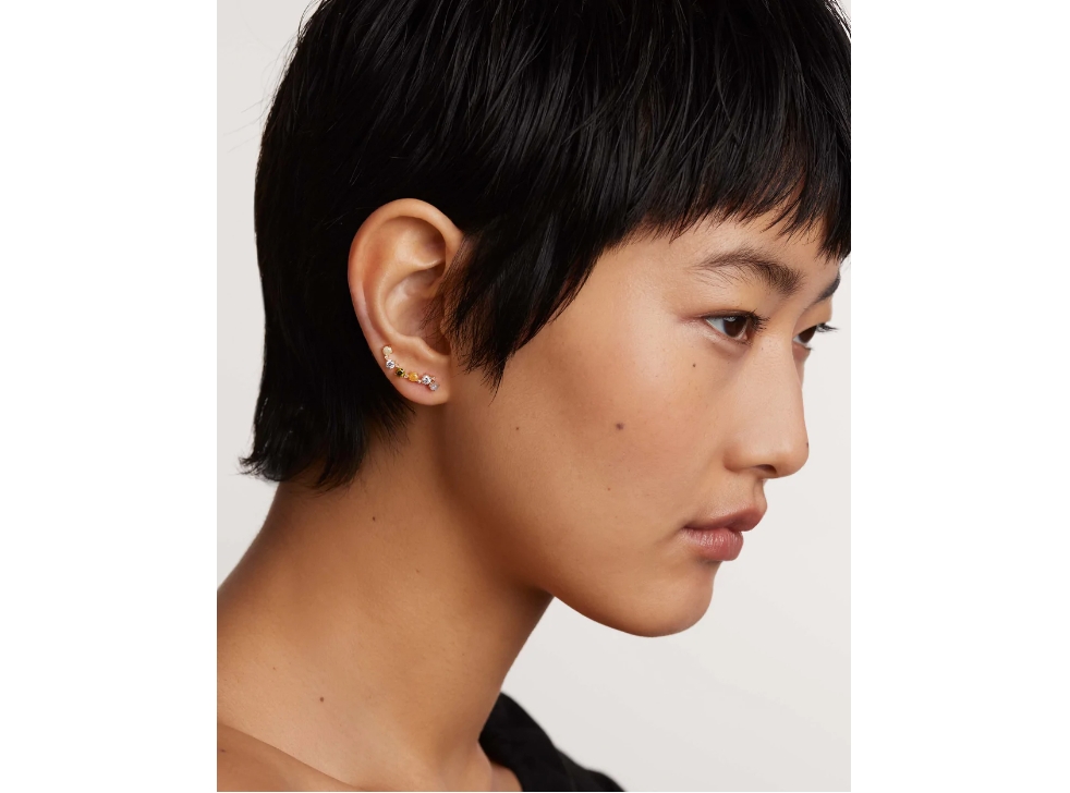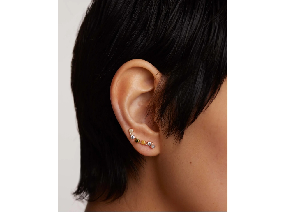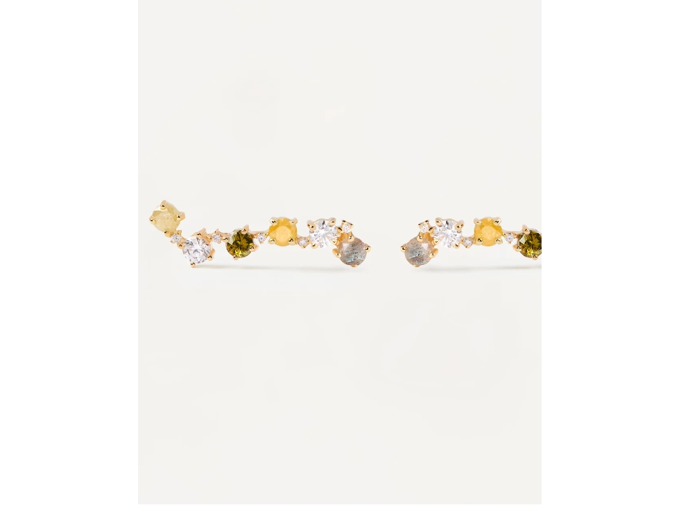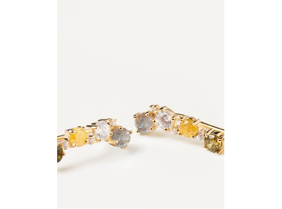 PDPAOLA Creating pieces crafted from 925 sterling silver, 18K gold plating, semi precious and natural stones that bring s little joy and sparkle to your everyday life.- A GOLDEN AGE DREAMBorn in idyllic scenes of nature, the jewels from Juno collection are reminiscent of the age of gods and mortals, brought to a contemporary setting.Juno is a celebration of women and nature as a creative force: femininity, elegance and vitality merged together to create unique and dreamy pieces.- IDYLLIC IRIDESCENCEMade in Sterling Silver with an 18K yellow gold plating and embellished with glowing stones, this jewelry piece will work as a focal piece when worn on its own, or will add a level of surprising detail when mixed together. Brilliant iridescence for a delicate glow.- MATERIAL: 925 Sterling Silver- FINISHING: 18k Gold plating- STONES:- Labradorite- Light green iced zirconia- Yellow iced zirconia- Green zirconia- White zirconia- STONES DIAMETER: 3 mm / 1 mm- WEIGHT: 1.81 g