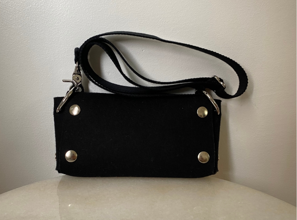Handcrafted from luxurious wool felt, this Baguette Bag is your next timeless accessory. The Baguette Bag is constructed out of one piece of felt with press studs closures at the side, which can be easily undone to pack flat in a suitcase. The versatility of this bag is in the straps – mix and match the interchangeable straps and handles to fit your outfit. Shop additional straps and handles here.NOTE! This bag was previously used and carefully treated in our studio for re-sale.Size:Depth 5cmHeight 10cmWidth 20cmInfo:Raw interiorHand-painted edgesAdjustable interchangeable strapMax. Strap length 120cmShackle Side Ring D4.5cm, 0,7cm thickness Materials:100% wool felt, cotton, metal hardware.Slight imperfections are not considered as defects. We use only high quality leather and small roughness may appear due to the nature of the material.Made in Australia.