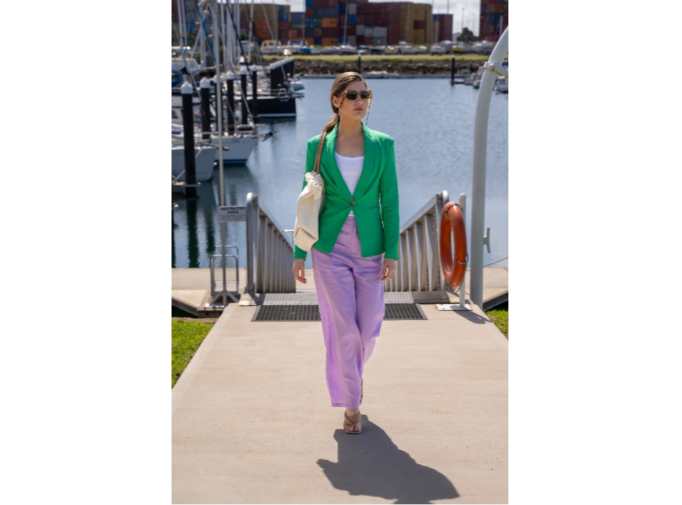 THE BARI BLAZER IS IN THE COLOUR OF THE SEASON! THE SINGLE BREASTED BLAZER FEATURES A SINGLE BUTTON FASTENING, SHAWL STYLE LAPEL, BUTTONED CUFF DETAIL AND TWO FRONT WELT POCKETS. COMPLETE THE LOOK WITH THE SANTORINI SHORT FOR AN ON-TREND CHIC STYLE!