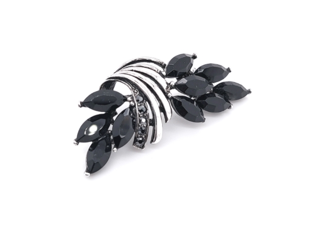 - Casting Gun-Metal colour brooch.- Black colour boat shape Swarovski Crystal- 30 mm (W) X 40 mm (H)- Made in South Korea.