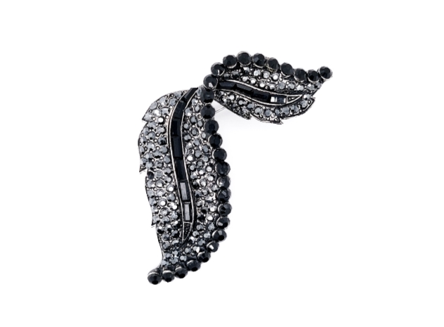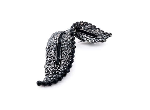 - Casting gun-metal colour flying leaf brooch.- Black colour Swarovski crystal- 60 mm (W) X 50 mm (H)- Made in South Korea.