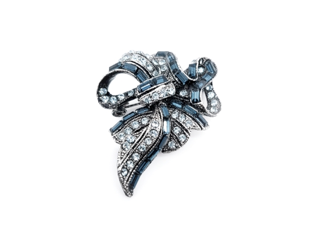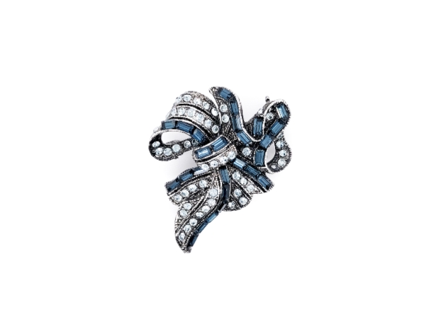 - Casting gun metal colour small crystal ribbon brooch.- Blue Swarovski crystal embedded.- 35 mm (W) X 38 mm (H)- Made in South Korea.