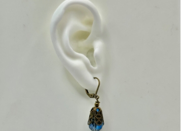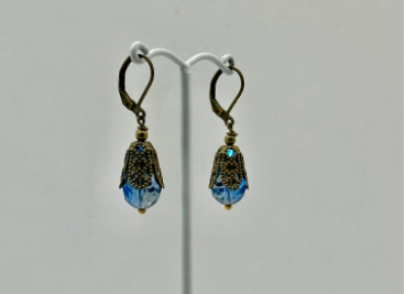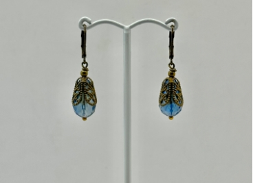Soft blue, sparkling, faceted glass drop beads. Framed with vintage look filigree bead caps. 35mm long from the top of the nickel free ear hooks. A good length for every day. So pretty!