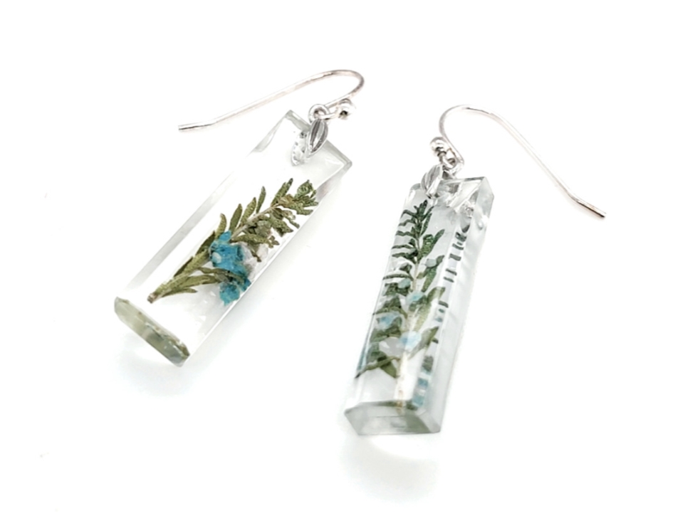 Each and every piece of the BOTANIGEM Jewellery collection is handmade, and are therefore similar yet uniquely different.Australian native 'Thryptomene Saxicola' plant set in the resin.925 sterling silver hookEarring size : 8 mm (W) X 40 mm (H) X 5 mm (D)Handmade in South Australia