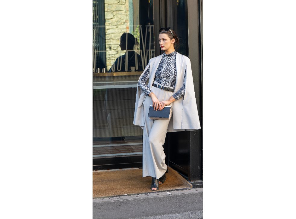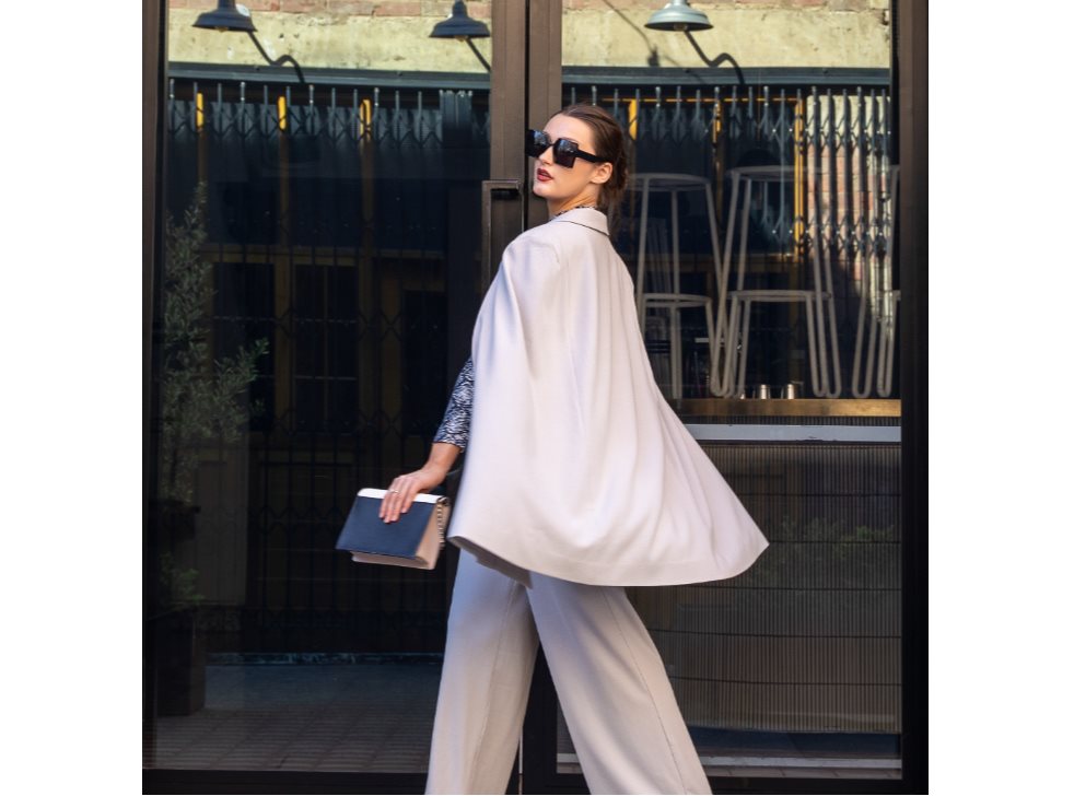 THE COMO CAPE IS A TAILORED SILHOUETTE AND THE PERFECT LAYERING PIECE! IT FEATURES PADDED SHOULDERS, STRAIGHT CUT LAPELS, SPLIT SLEEVES, FUNCTIONAL SIDE POCKETS AND A SINGLE HOOK AND EYE CLOSURE. PAIR IT WITH THE MATCHING PALAZZI PANT FOR THE ULTIMATE CAPE PANTSUIT SET!