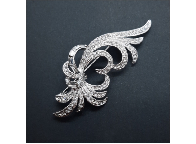 - Casting and rhodium plated brooch.- Clear Austria Crystal embedded.- 33 mm X 75 mm- Made in South Korea.