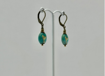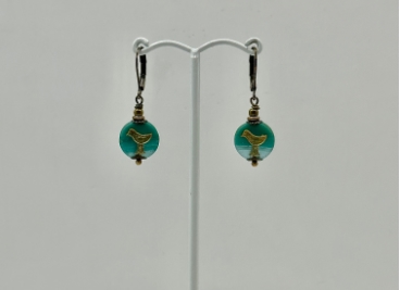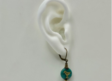 Very sweet birds impressed on both sides of the Czech glass beads. Lovely detailing and colour! 35mm long from the top of the nickel free ear hooks. So cute!