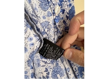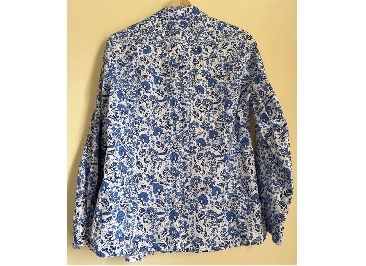 PrelovedDAVID JONES Blue White Floral Dress Shirt Blouse Cotton Blend Size 12