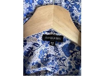 DAVID JONES Blue White Floral Dress Shirt Blouse Cotton Blend Size 12