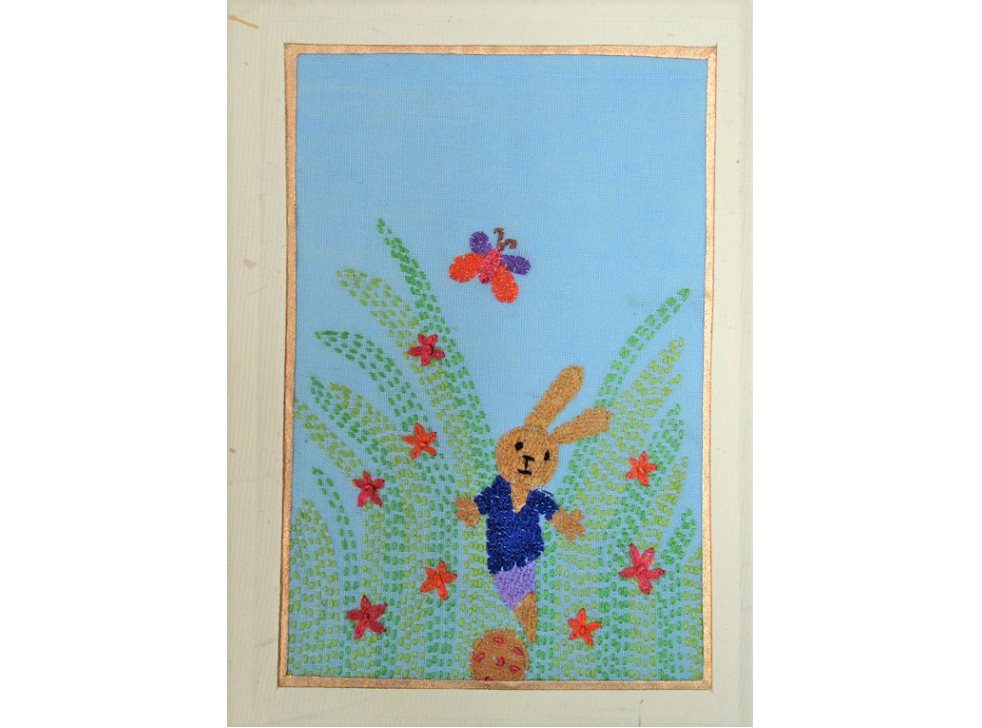 Blue BunnyHand stitched card mounted on handmade paperBlankFair Trade