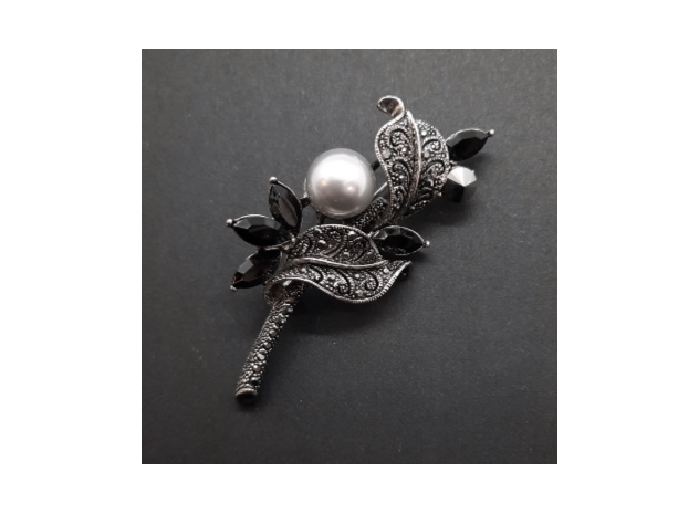 - Casting gun metal colour brooch.- Silver grey colour faux pearl with Austria Crystal embedded.- 33 mm X 70 mm- Made in South Korea.