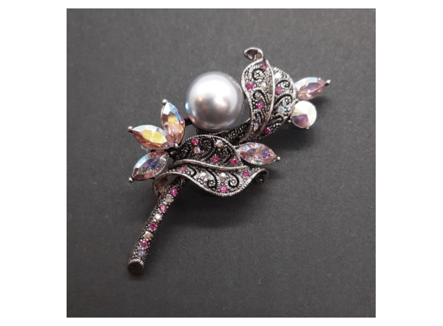 - Casting gun metal colour crystal brooch.- AB Purple colour Swarovski crystal with faux pearl.- 33 mm X 70 mm- Made in South Korea.