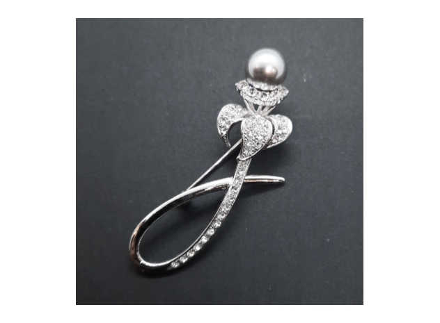 - Casting white gold plated brooch.- 13 mm diameter silver colour faux pearl and Swarovski crystal embedded.- 30 mm X 70 mm- Made in South Korea.