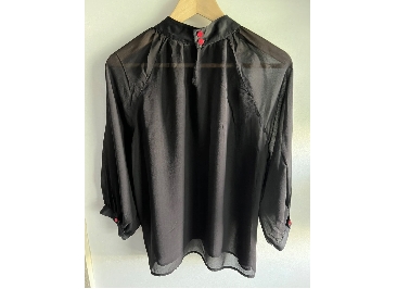 PrelovedGorman Sheer Black Short Sleeve Top Red Buttons Size 10 Cue Style