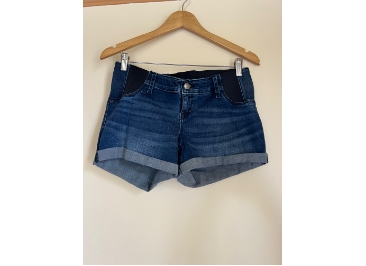 Preloved INGRID & ISABEL Maternity Pregnancy Denim Midi Shorts Elastic Side Size 27
