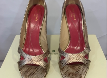 Vintage designer Kate Spade New York gold snake print leather heels/Made in Italy/Size 9/Damage report-some wear on leather and soles