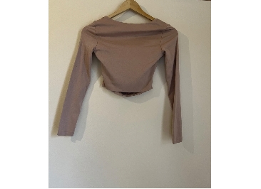PrelovedKOOKAI Taupe Cut Out Long Sleeve Crop Cotton Stretch Size 1