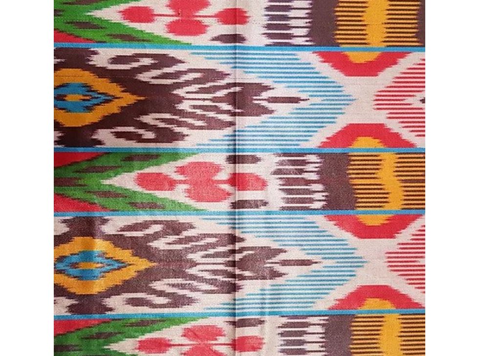 This lampshade is handmade from hand-loomed silk ikat fabric from Uzbekistan. The fabric is silk satin with a surface sheen with a geometric design. This fabric is handwoven on narrow looms so the maximum height for lampshades made from this material is 35cm. Our lampshades are made from handmade fabrics from around the globe. Each shade is unique and the fabric is made in limited quantity. Stands also available for purchase. Contact us at Fabric of Life.