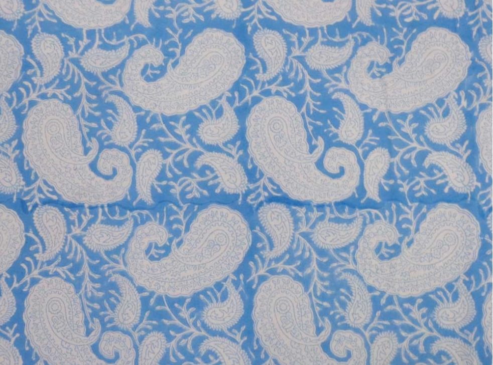 Cotton Napkin Block Printed on 100% Cotton with blue and white paisley designSIZE: 45 x 45cmsHandmade in IndiaExquisite designs.Block printed by hand using carved wooden blocks.Well crafted stitching.Well absorbing 100% Cotton.Machine Washable