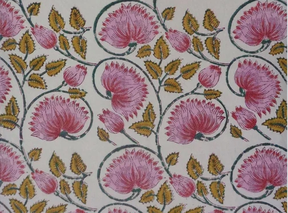 Cotton Napkin Block Printed on 100% Cotton with pink flowers and leavesSIZE: 45 x 45cmsHandmade in IndiaExquisite designs.Block printed by hand using carved wooden blocks.Well crafted stitching.Well absorbing 100% Cotton.Machine Washable