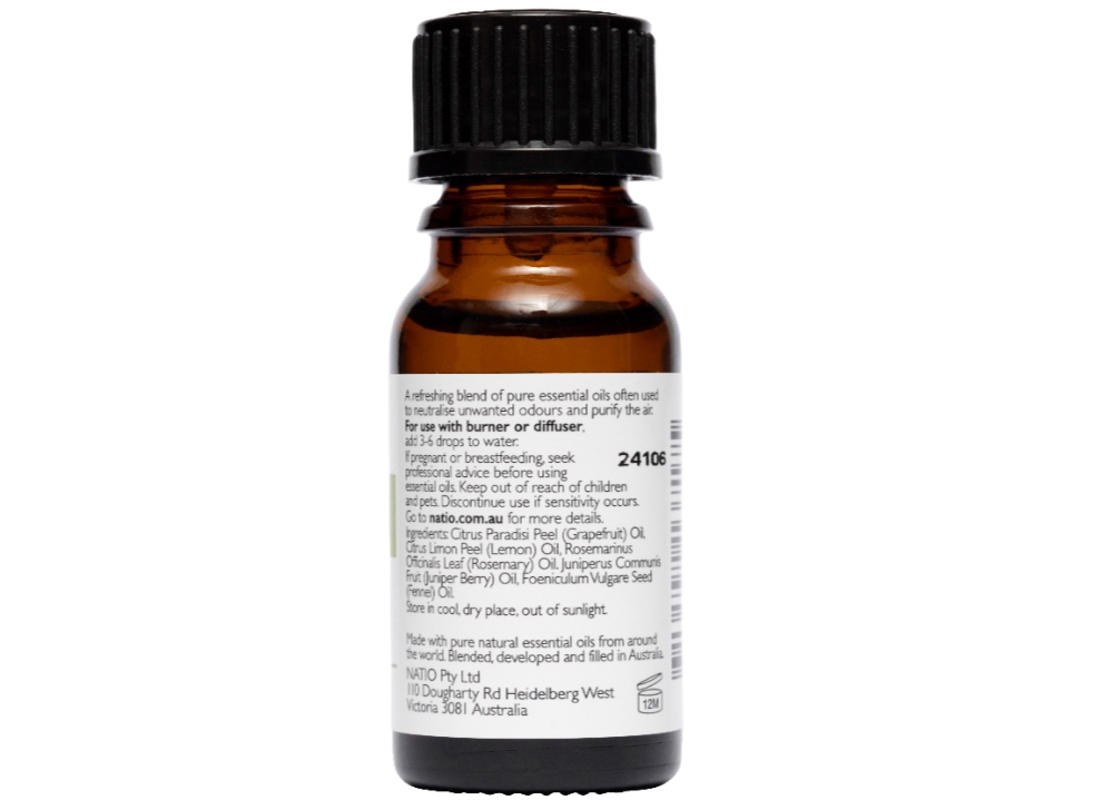 Refresh body and mind with this cleansing blend of 100% pure and natural essential oils. Harnessed from nature's powerful aromatic botanicals, individual oils including Lemon, Fennel and Juniper Berry - often used to help neutralise unwanted odours and purify the air - combine to help create an ambience of freshness and purity. Part of Natio's Home Happiness range.