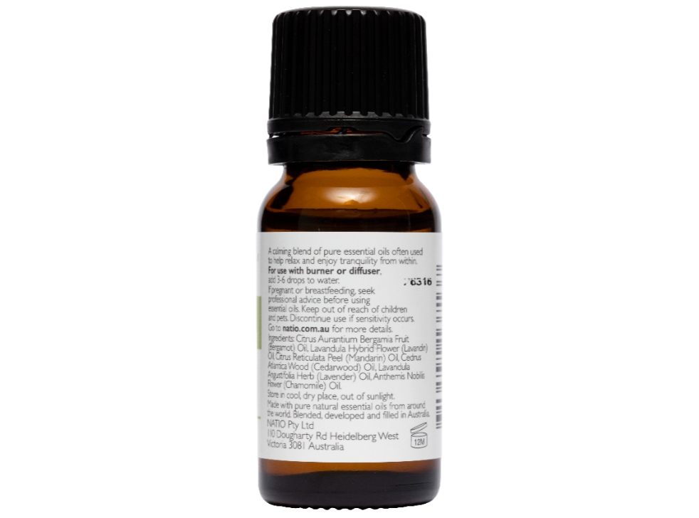 Call on nature's powerful botanicals to help settle your mind and spirit with this wonderfully warm and floral blend of 100% pure essential oils. Featuring Chamomile, Mandarin and Lavender, which are often used to help calm the mind, de-stress the body and inspire tranquillity from within, the Relax blend offers soothing solace for mind, body and soul. Part of Natio's Home Happiness range.