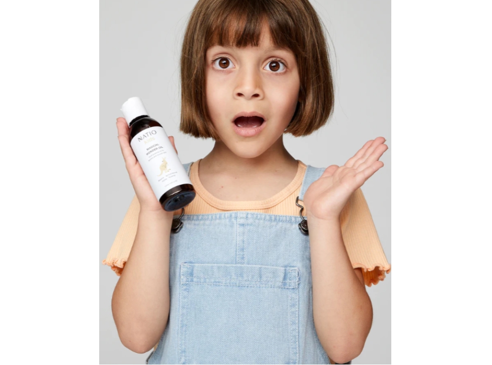 Gently massage the day away with this nourishing multi-purpose oil. Perfect on its own, the fragrance-free blend of Sesame, Apricot Kernel, Jojoba and Rosehip oils soothes and nourishes young skin. Combined with Natio Kids Essential Oil Blends, Magical Wonder Oil supports an extra restorative massage with aromatherapy benefits. Suitable for toddlers through to tweens.