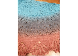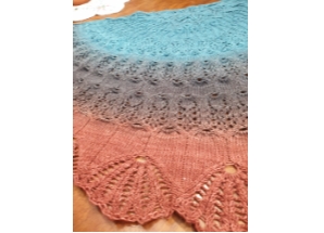 Hand spun, hand knitted wool shawl. Made by an Adelaide Hills artist using her own designs.
