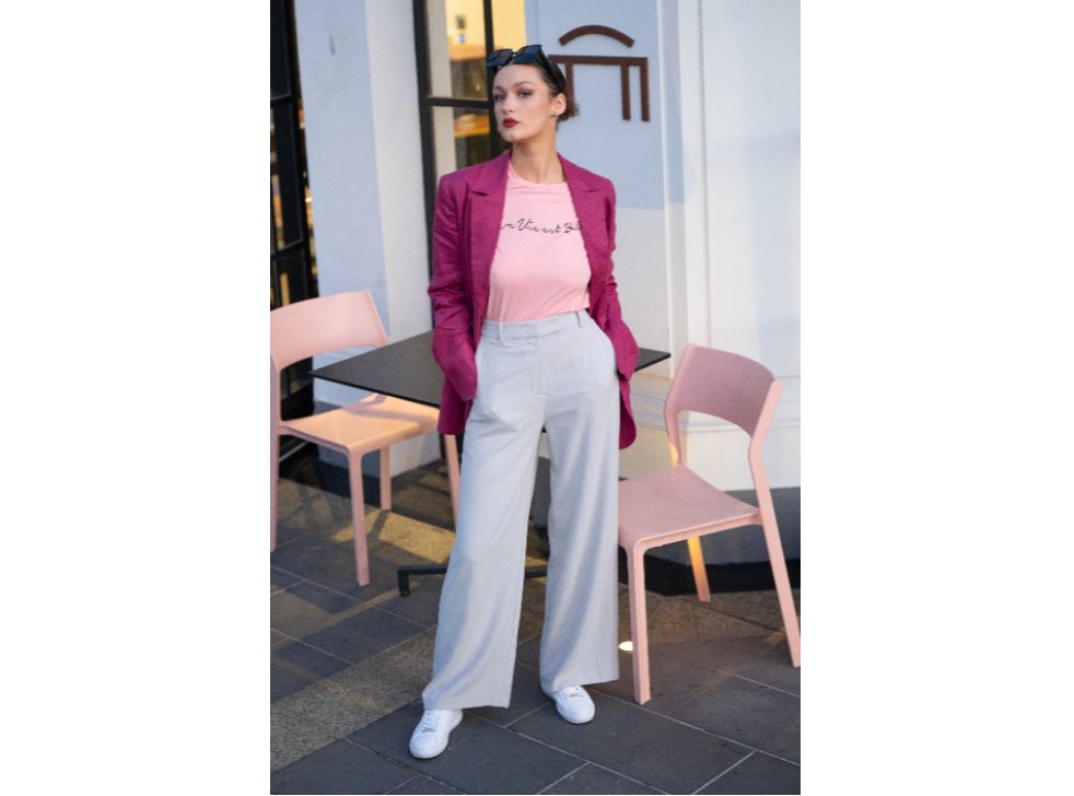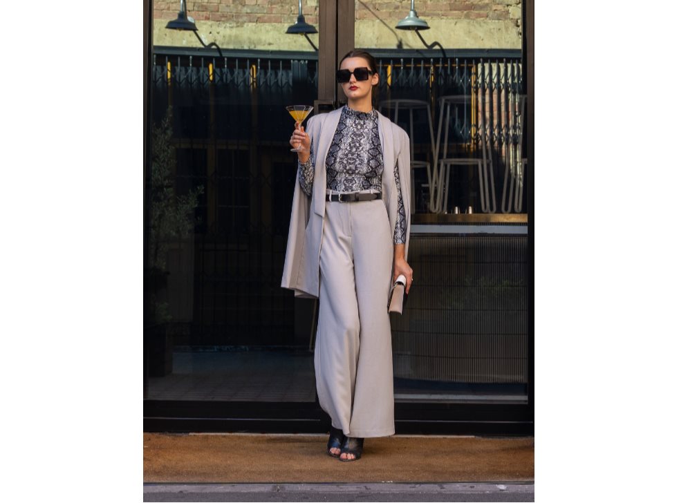THE PALAZZI PANT IS THE EPITOME OF EFFORTLESS TAILORING! THE HIGH-RISE PANT FEATURES A WIDE LEG WITH BELT LOOPS, A ZIP FLY, FUNCTIONAL HIP POCKETS AND BACK WELT POCKETS.