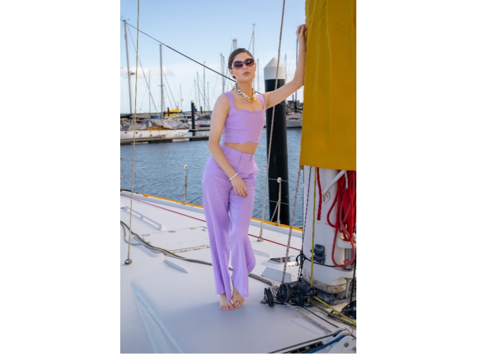 THE POSITANO PANT IS A WIDE LEG, HIGH WAISTED PANT IN A BEAUTIFUL LILAC COLOUR. IT FEATURES BELT LOOPS, A ZIP UP FRONT, SIDE SLIT POCKETS AND DOUBLE FLAP BACK POCKETS. STYLE IT WITH ITS MATCHING SALERNO BLAZER AND CAPRI CROP FOR THE ULTIMATE SPRING/SUMMER LOOK!