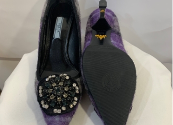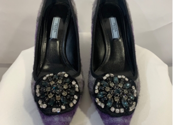 Vintage designer Prada purple felt heels with Swarovski details/Made in Italy/Size 39 1/2/Damage report-near perfect condition