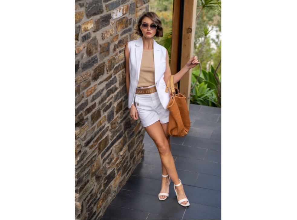 THE SANTA SHORT IS A PAPER-BAG STYLE SHORT WITH A DETACHABLE WAIST BELT. THE MEDIUM WEIGHT COTTON FABRIC SHORTS FEATURES WELT SLANT SIDE POCKETS WITH FLAP AND BUTTON DETAIL, ZIP FLY WITH BUTTON CLOSURE, WELT BACK POCKETS AND COMPLETE WITH SHORT CUFF.