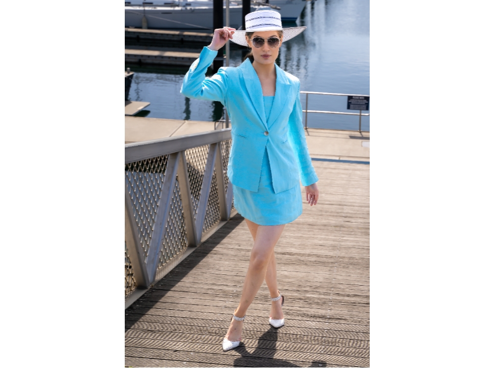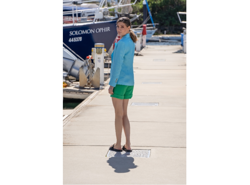 THE SOUTHAMPTON BLAZER IS THE EPITOME OF SPRING SUMMER! THE STRIKING SOFT BLUE COLOUR AND LIGHT WEIGHT LINEN MAKES IT THE PERFECT STYLE FOR TRAN-SEASONAL WEAR. IT FEATURES PEAK LAPELS, WELT FRONT POCKETS, SINGLE BUTTON CLOSURE, SLEEVE HEM VENTS AND FOUR NON-FUNCTIONING BUTTONS AT THE CUFF. STYLE IT WITH THE MATCHING DOVER DRESS OR SARDEGNA SKIRT FOR A STRIKING LOOK!