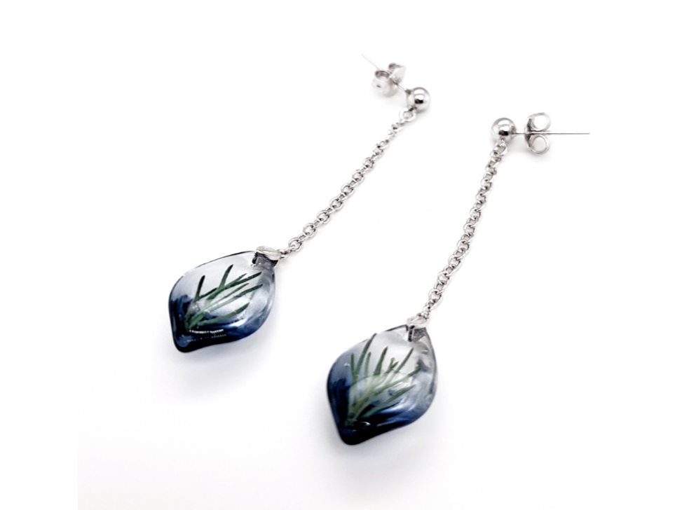 Each and every piece of the BOTANIGEM Jewellery collection is handmade, and are therefore similar yet uniquely different.Australian native plant 'Woolly Bush' with Czech glass and resinPendant size : 12 mm (W)x 20 mm (H) include bailEarring size : 12 mm (W) X 60 mm (H)Rhodium plated 925 sterling silver long drop chain stud earringsHandmade in South Australia.