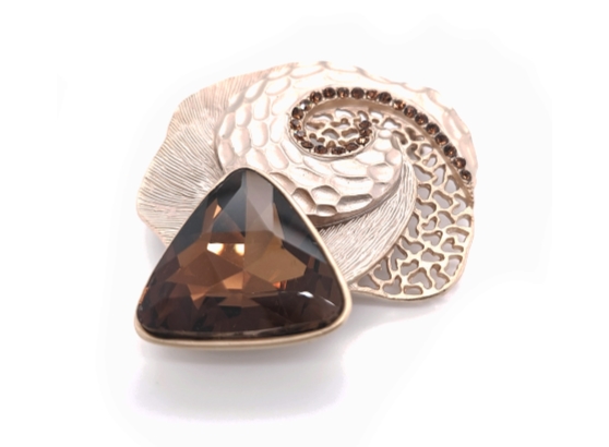 - Casting rose gold colour triangle brooch.- 25 mm X 25 mm Topaz colour Swarovski crystal.- 55 mm diameter- Made in South Korea.