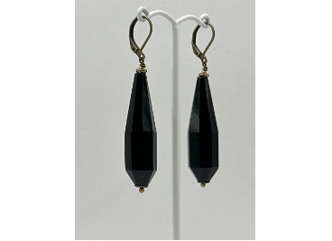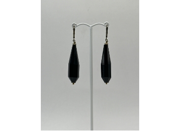 Hard to find antique French Jet faceted drops. These are most likely made around 1910! Their condition is good, with some ware marks. Measuring 63mm long from the top of the nickel free, secure lever back ear hooks x 12mm wide. Absolutely stunning!