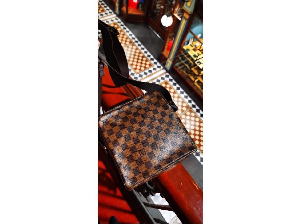 Louis Vuitton Damier Canvas Olav PM messenger bag Brown leather Damier Canvas Olav PM messenger bag from Louis Vuitton Pre-Owned featuring a check pattern, a printed logo to the front, a top zip closure, an internal logo patch and a shoulder strap. Please be mindful that this piece has led a previous life, and may tell its story through minor imperfection. Purchasing this item continues its narrativeso you can be confident that you're making a POSITIVELY CONSCIOUS choice for the planet.Made in FranceEXCELLENT condition : has just few mild of wear singes that may not even be seen . But if you really look closely , you can find them a little bit, which is a fantastic bag.Accessories: dustbag, original box, cardsAccessories Notice : Before purchasing, please refer to the images of the accessories included with the item.Condition Notice : Before purchasing, please refer to the images for the exact condition of the item. Please be aware we don't accept any offers for this item with or without " make an offer " button .